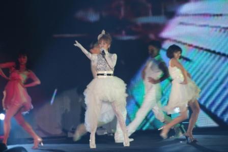 演唱会上的蔡依林总向观众展示出她甜美性感的一面(图片来源:台湾媒体)