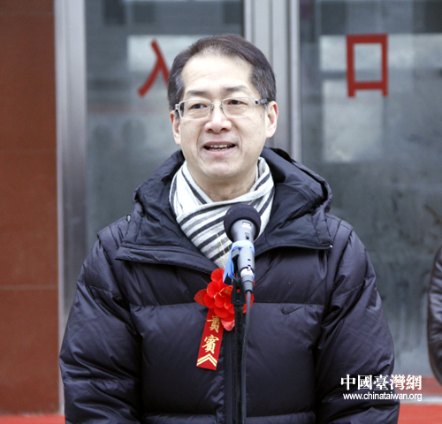 由顶新公益基金会参与援建的河北平山县西柏坡中学综合楼竣工启用,图为启用仪式上顶新基金会腾鸿年理事长发言(中国台湾网记者 芜同 摄)