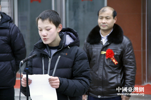 由顶新公益基金会参与援建的河北平山县西柏坡中学综合楼竣工启用,图为启用仪式上学生代表发言(中国台湾网记者 芜同 摄)