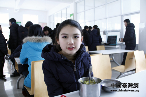 由顶新公益基金会参与援建的河北平山县西柏坡中学综合楼竣工启用,28日中午,同学们已经坐在宽畅的食堂里就餐了(中国台湾网记者 芜同 摄)