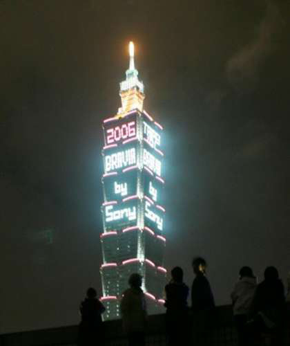 2006年,SONY公司在台北101大楼打出的点灯广告(资料图)