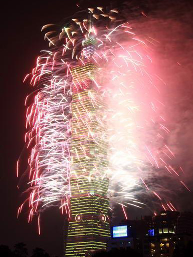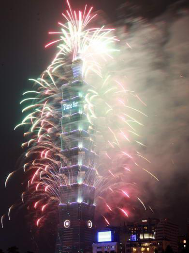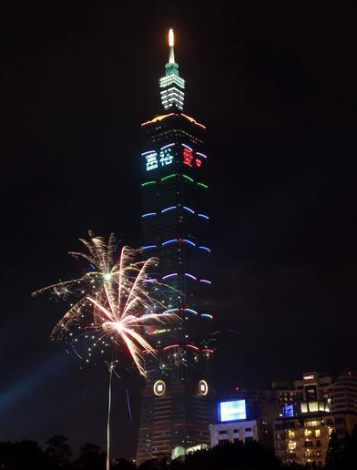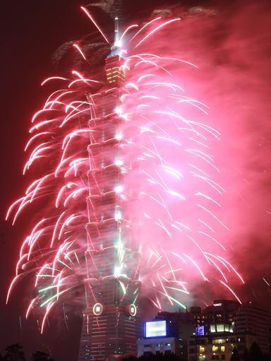 和去年一样长达188秒的2013台北101跨年烟火秀精彩登场,估计有85万人到场观赏。图片来自台湾今日新闻网