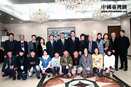 21日下午,海峡两岸关系协会会长陈云林在北京会见了来京交流的广东东莞台商子弟学校董事长叶宏灯,及其率领的该校校董、师生与家长代表。(中国台湾网 于斯文 摄)
