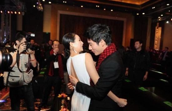 章子怡“下腰”闪避王力宏的拥抱,场面十分尴尬(图片来自网络)