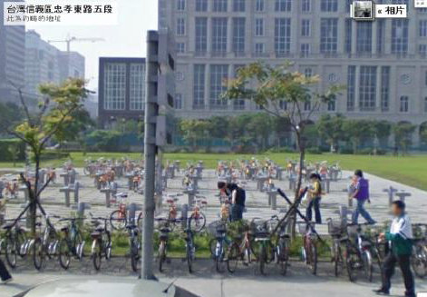 台北自行车租用站停车柱像十字架。图自台湾今日新闻网