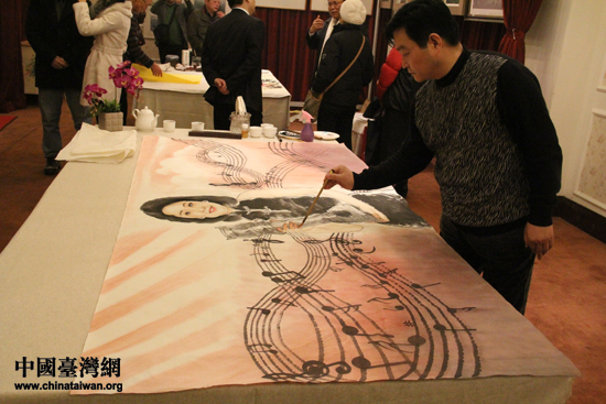 某知名画家在用笔尖勾勒出音乐的旋律。(中国台湾网 何建峰 摄)