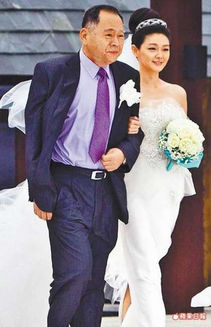 大S(右)前年3月在海南岛挽着S爸出嫁。图片来源:台湾媒体