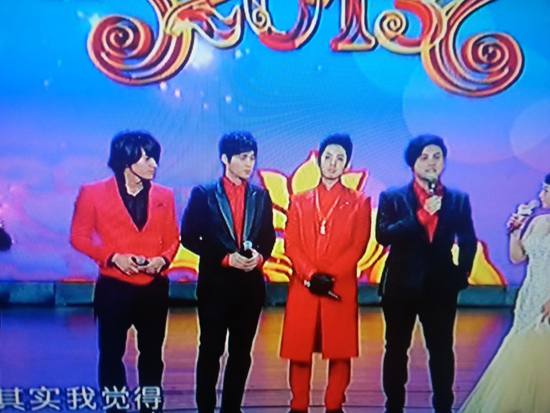 中国台湾网2月10日消息 正月初一晚,江苏卫视蛇年春晚舞台上,万千粉丝期待已久的F4合体闪亮登场。在粉丝们的尖叫声、呐喊声中,F4演唱了成名曲《流星雨》和《第一时间》,还向观众曝出了很多个人 隐私。