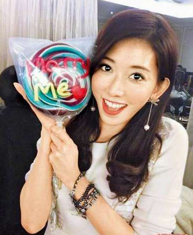 林志玲手拿一支写有“Marry Me”的棒棒糖(图片来自台媒)