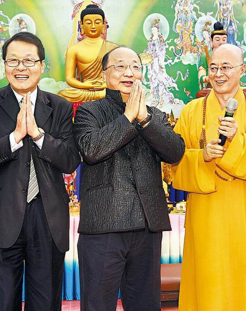 胡志强(中)17日现身祈福会。(图片来自台媒)
