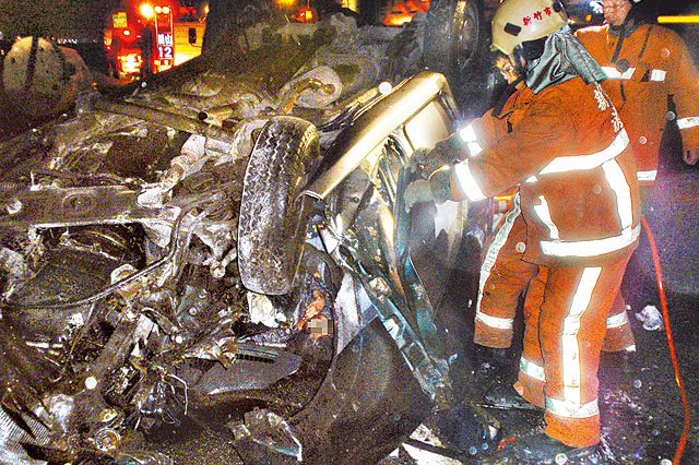 办案交警指出,车祸死伤8人分属两辆车,一辆南下厢型车遭水泥管撞上,车上一家6口参加喜宴途中遇险,名叫李盈昀(24岁)的女性坐右前座遭遇正面撞击,头颅骨折伤重不治,坐后座的李佳玟(22岁)则头颅蜘蛛网膜破裂,仍在加护病房救治。另一辆车则是北上跟在联结车后面,车上坐一对情侣,男的受伤,女的则头部遭重创不治。