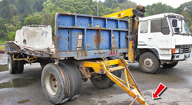肇事联结子车的连接器(箭头处)断裂。(图片来自台媒)