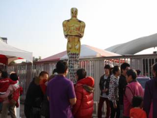 中台湾灯会所在的圆满户外剧场举办“和奥斯卡小金人合照集气”活动(图片来自台湾“中广新闻网”)