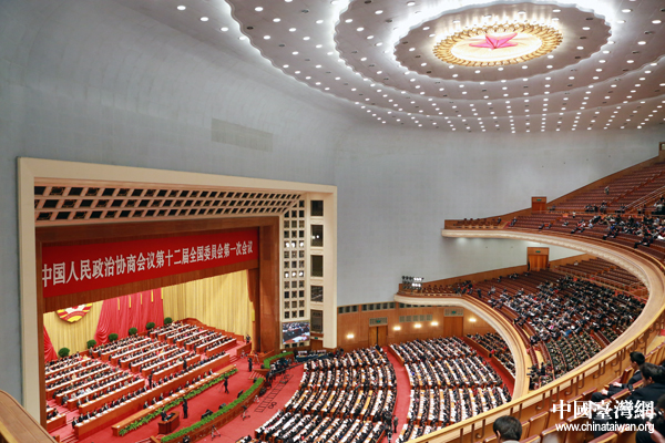 全国政协十二届一次会议于今天下午3时在北京人民大会堂开幕。(中国台湾网 于斯文 摄)