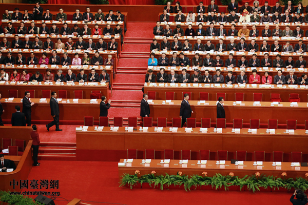 12日上午,全国政协十二届一次会议在京闭幕。(中国台湾网 于斯文 摄)
