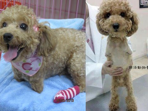 居住新北市的李姓正妹(左)过失导致贵宾犬MOMO(右)前肢重度残疾,外传案件已函送检方审理。(来源:台湾“今日新闻网”)
