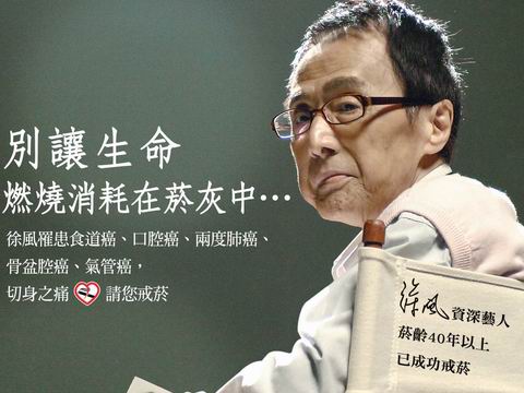 徐风之前曾多次为台当局倡导抗癌理念,力劝民众不要抽烟。(图片来自台媒)
