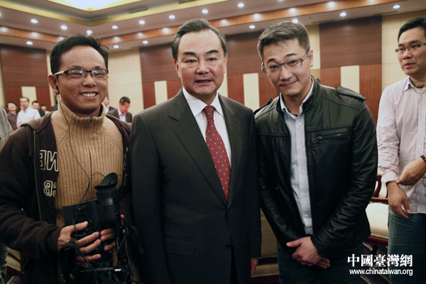 王毅与台湾媒体记者合影。(中国台湾网 何建峰 摄)