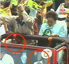 凶手共开两枪,一枪击中吕秀莲的膝盖,一枪擦过陈水扁的腹部。图片来自台湾今日新闻网 第1页第2页第3页第4页第5页第6页第7页第8页第9页第10页第11页第12页第13页