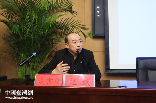 全国台联副会长纪斌介绍情况。(北京市台联供图 裴芝荣 摄)