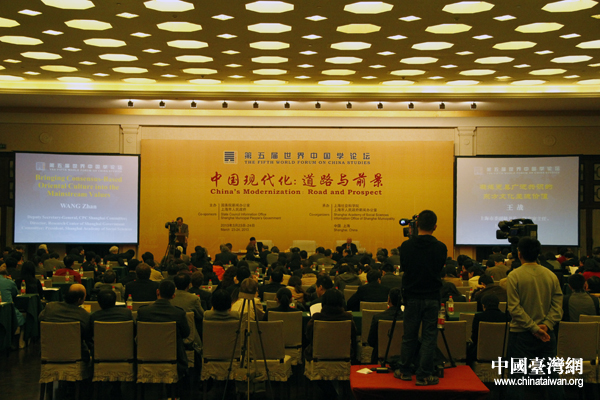 中国台湾网25日上海消息 24日下午,为期两天的第五届世界中国学论坛在上海展览中心友谊会堂圆满闭幕。本届中国学论坛以“中国现代化:道路与前景”为主题,近300名中外专家学者和意见领袖齐聚上海,参与全体大会、圆桌会议以及八场并行分会,文化的碰撞与交流,造就一场丰盛的精神文化大餐。