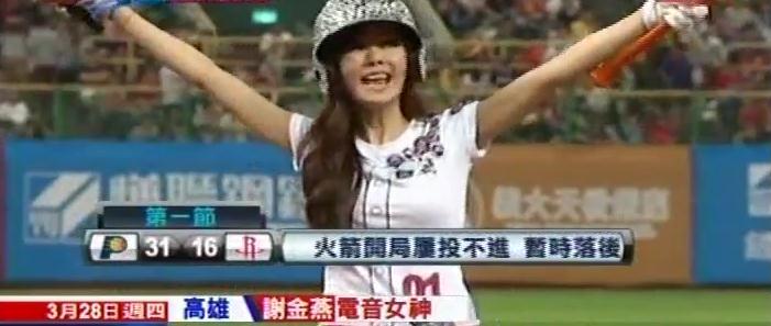 台湾职棒大联盟犀牛队主场开幕赛,台湾电音歌手谢金燕开球。(图片来自台媒)