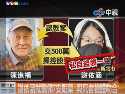 新北市八里富商陈进福双尸命案,女店长谢依涵就医领安眠药与死者检体吻合。(图片来自台湾今日新闻网)