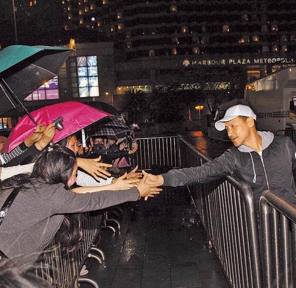 张学友(右)昨天下午彩排前,和久候的张国荣粉丝握手问候。(图片来自台媒) 第1页第2页第3页第4页第5页第6页第7页