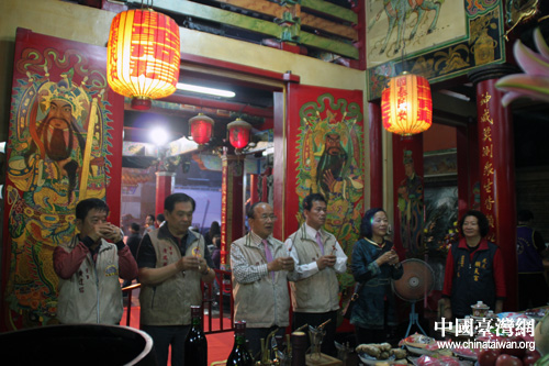 到虎尾顺天宫内迎驾的信众并未因下雨减少。(中国台湾网 李典典 摄)