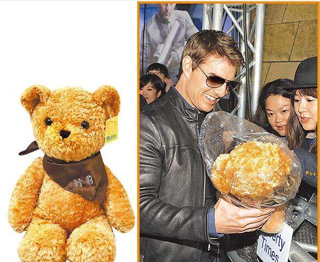 他前晚抵台,有500多名粉丝在晶华饭店守候,昨晚的首映会吸引了2千多人,引爆他3天2夜宝岛行的高潮。昨天台北春雨绵绵,热情粉丝下午2点多就到大直卡位,晚间6点43分阿汤哥穿皮衣劲装现身,正好天公作美雨停,现场尖叫声四起。阿汤哥在红毯上来回穿梭,帮左右两边的影迷签名、合照,150公尺的红毯走了2个多小时。他收到绣有女儿舒莉中文名字的小熊,开心表示:“太棒了,她会很开心。”