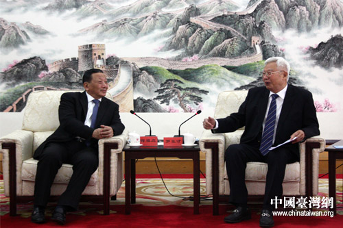 全国政协原副主席、中国和平统一促进会名誉会长罗豪才(右)在京会见了由曾福应(左)率领的菲律宾中国和平统一促进会访问团。(中国台湾网 郜利敏 摄)