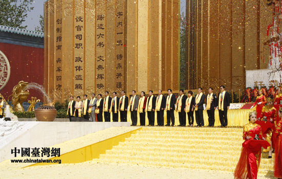 海内外同胞代表参加拜祖大典第九项“天地人和”。(中国台湾网 李丹 摄)