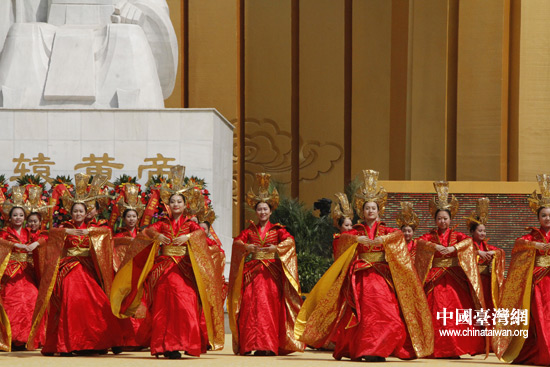 4月12日,舞蹈演员在癸巳年黄帝故里拜祖大典上表演乐舞敬拜。(中国台湾网 李丹 摄)