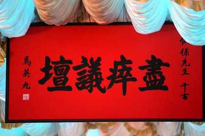 马英九颁“尽瘁议坛”挽额。图片来自台湾媒体