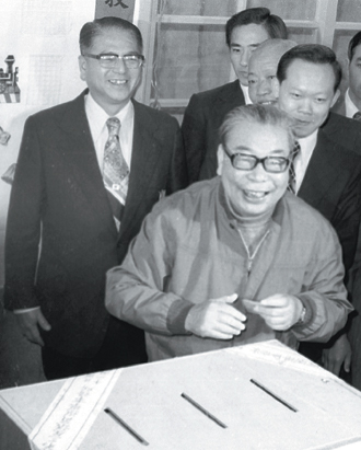 1977年,林洋港(左后)陪同蒋经国(左前)投票选举台北市议员。(来源:台湾《联合报》)