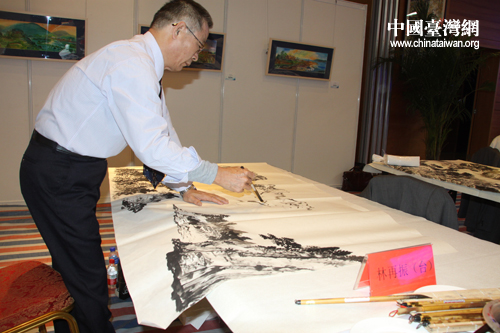 台湾书画家林再振在进行创作。(中国台湾网 郭庆娜 摄)
