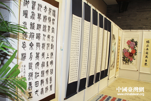 笔会同时进行展出的南台湾书画家作品。(中国台湾网 郭庆娜 摄)