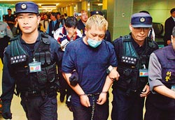 发生在高铁车厢和“立委”卢嘉辰服务处的“行李炸弹案”嫌犯胡宗贤(前中)、朱亚东(后中)16日自大陆押回台湾。