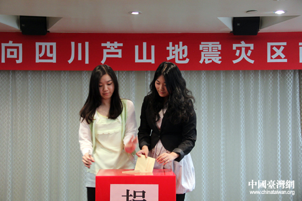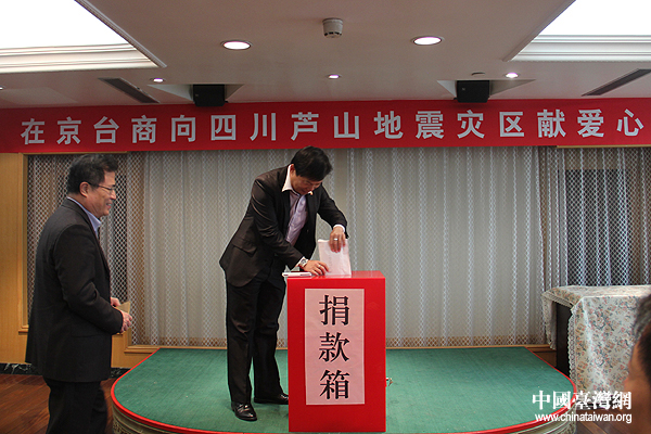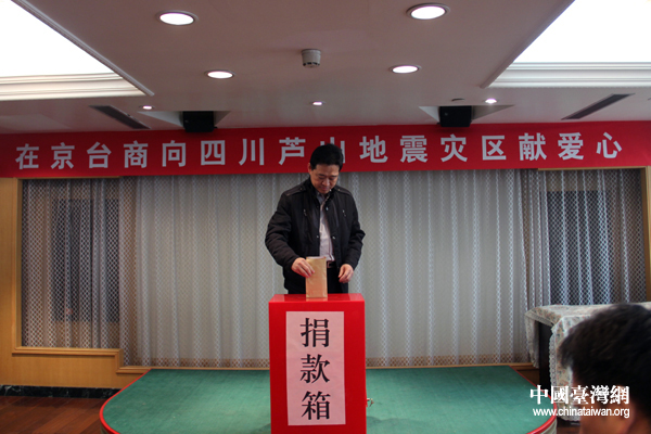 北京市台资企业协会23日上午举行献爱心活动,向四川芦山地震灾区的同胞捐赠救灾款项。(中国台湾网 杨丽 摄)