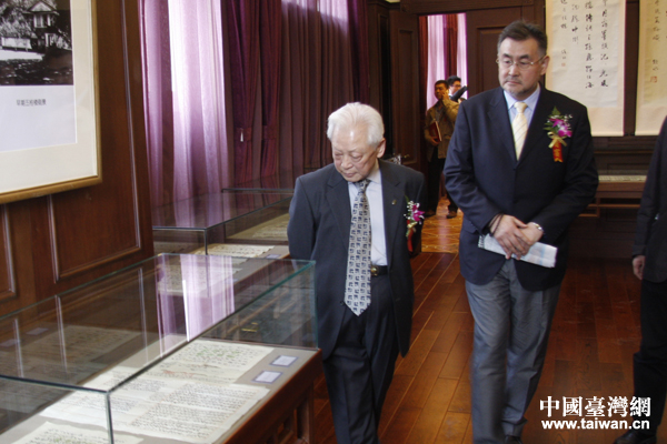 “林献堂抗日事迹陈列馆”暨北京五桂楼会馆开馆仪式4月28日在北京台湾街五桂楼举行。图为十一届全国人大常委会副委员长周铁农,参观林献堂抗日事迹陈列馆。(中国台湾网 芜同 摄)