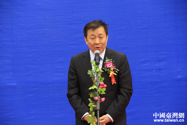 “林献堂抗日事迹陈列馆”暨北京五桂楼会馆开馆仪式4月28日在北京台湾街五桂楼举行。图为中华文化促进会常务副会长王石致辞。(中国台湾网 何建峰 摄)