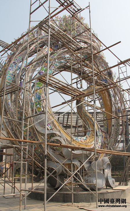 未完工的雕塑“浴火凤凰” (中国台湾网 黄艳艳 摄)