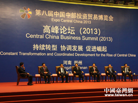 第八届中国中部投资贸易博览会高峰论坛现场。 (中国台湾网 马萌 摄)