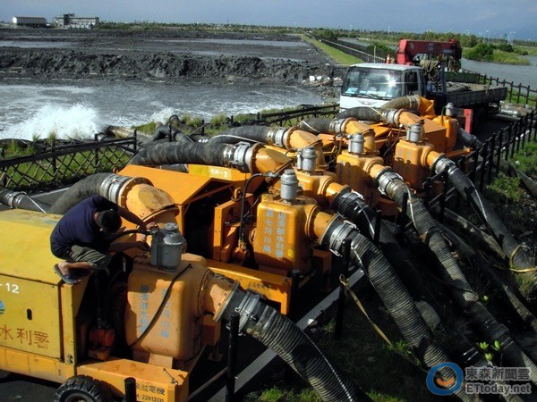台湾地区今起迎最强暴雨,未来5天防汛任务严峻。屏东县准备抽水机防灾。(图片来源:台湾“东森新闻网”)