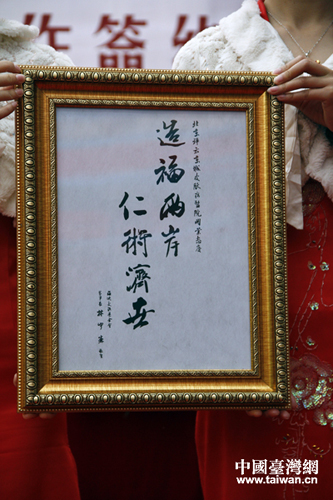 国民党副主席蒋孝严发来贺词“骏业宏开”。(中国台湾网 杨丽 摄)