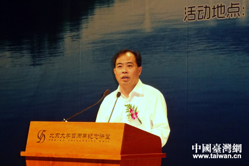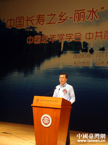 今天上午,中国老年学学会与浙江省丽水市委、市政府在北京举行“中国长寿之乡—丽水”授牌仪式暨新闻发布会,中国老年学学会正式授予丽水为“中国长寿之乡”。图为浙江省政府副省长卢子跃讲话。(中国台湾网 王伟 摄)