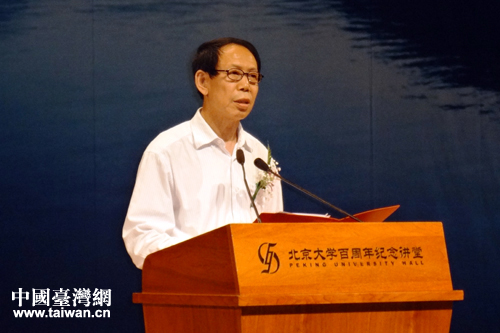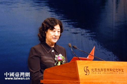 今天上午,中国老年学学会与浙江省丽水市委、市政府在北京举行“中国长寿之乡—丽水”授牌仪式暨新闻发布会,中国老年学学会正式授予丽水为“中国长寿之乡”。图为中国老年学学会常务副会长赵宝华讲话。(中国台湾网 王伟 摄)