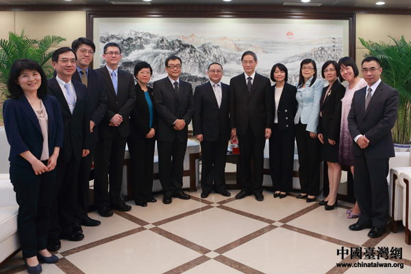 张志军与台湾联合报系董事长王文杉率领的联合报系访问团一行合影。(中国台湾网 于斯文 摄)