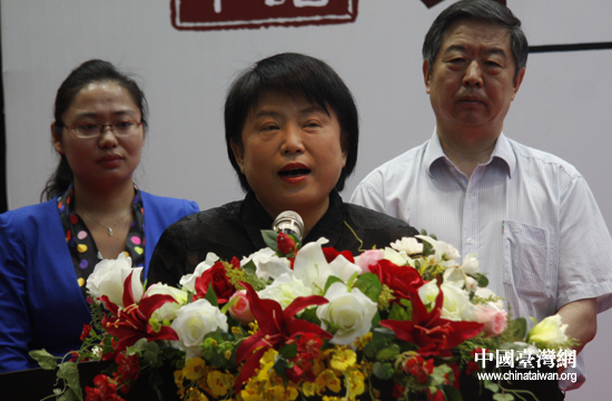 台湾中华华夏文化交流协会理事长沈智慧在开幕式上致辞。(中国台湾网 朱炼 摄)