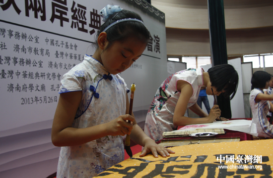 学生表演书法。(中国台湾网 朱炼 摄)